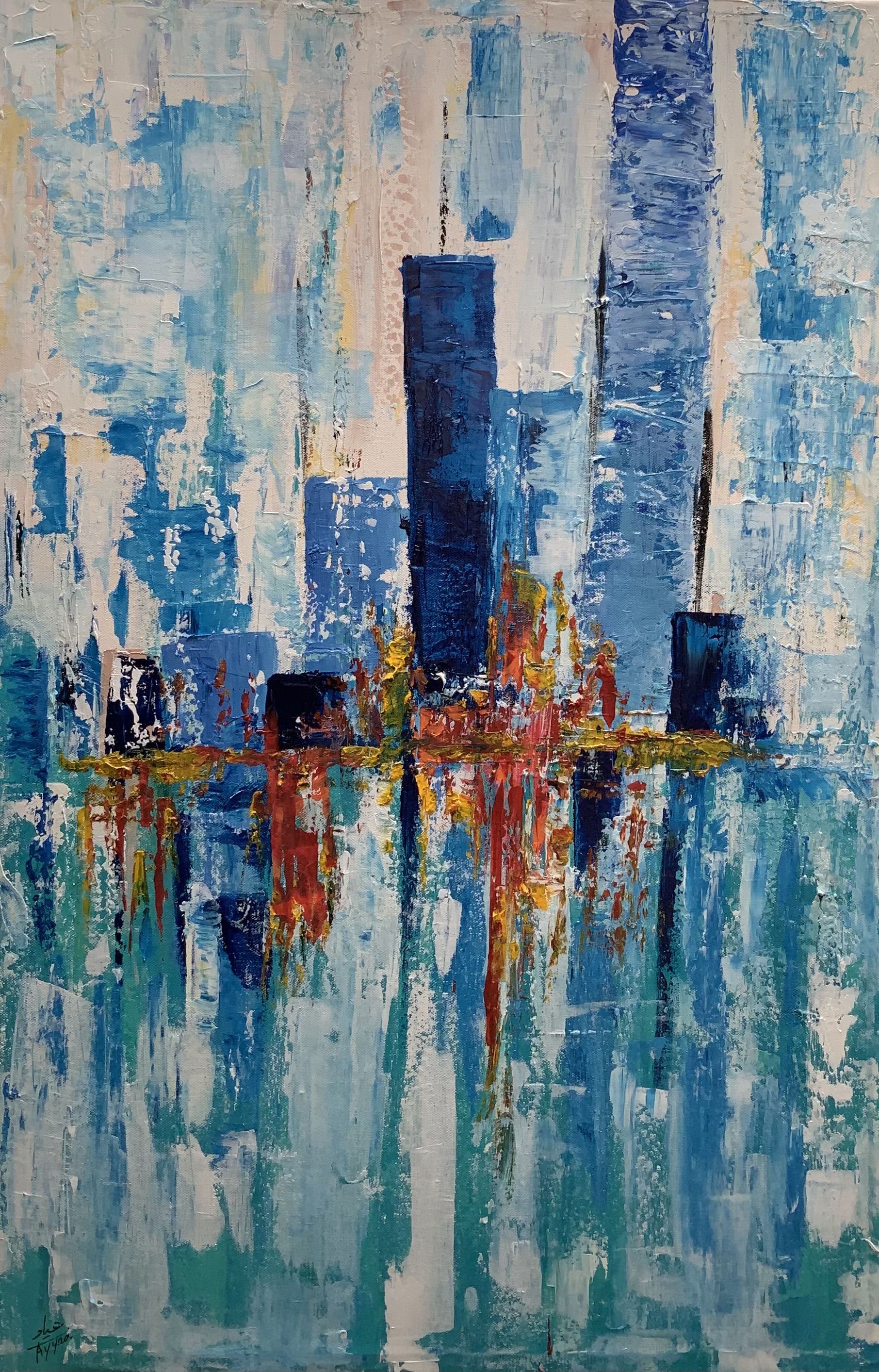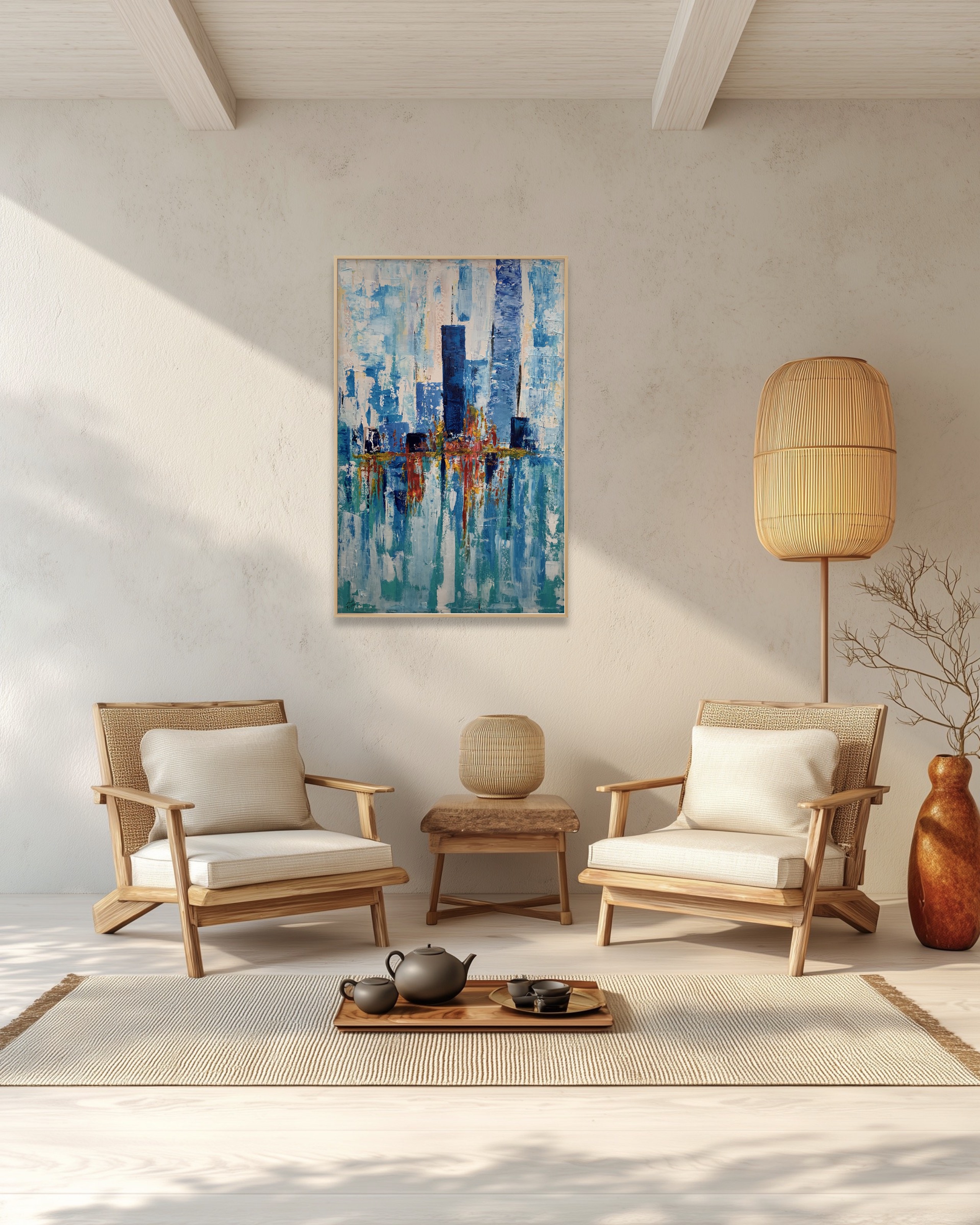 5. **Artistic expression**: The painting conveys a sense of elegance and comfort through the use of light blue.