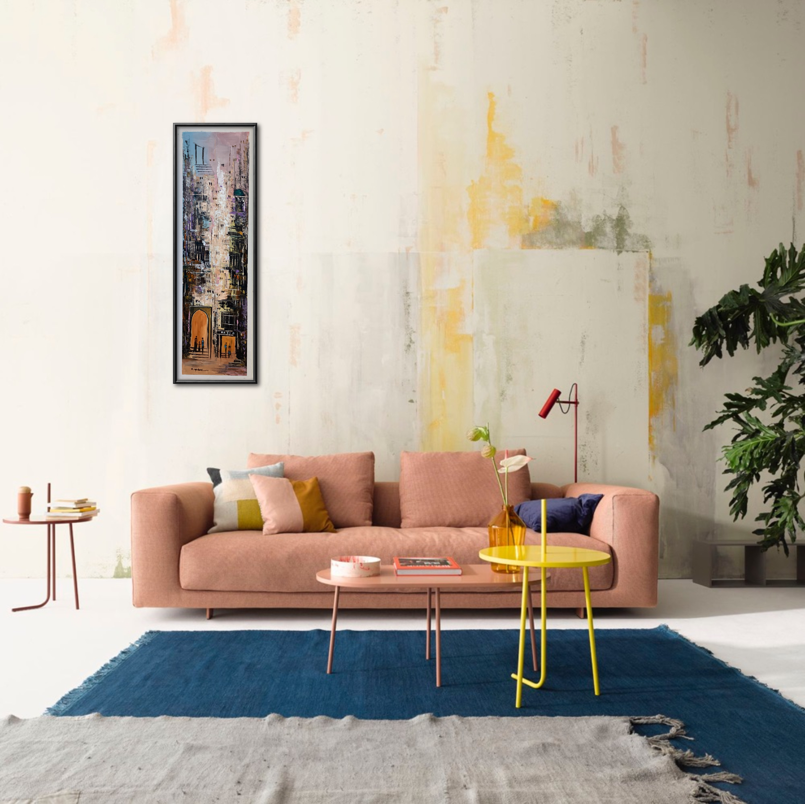 3. Dynamic brushwork: The flowing strokes convey the energy and glow of the city bathed in sunset light.