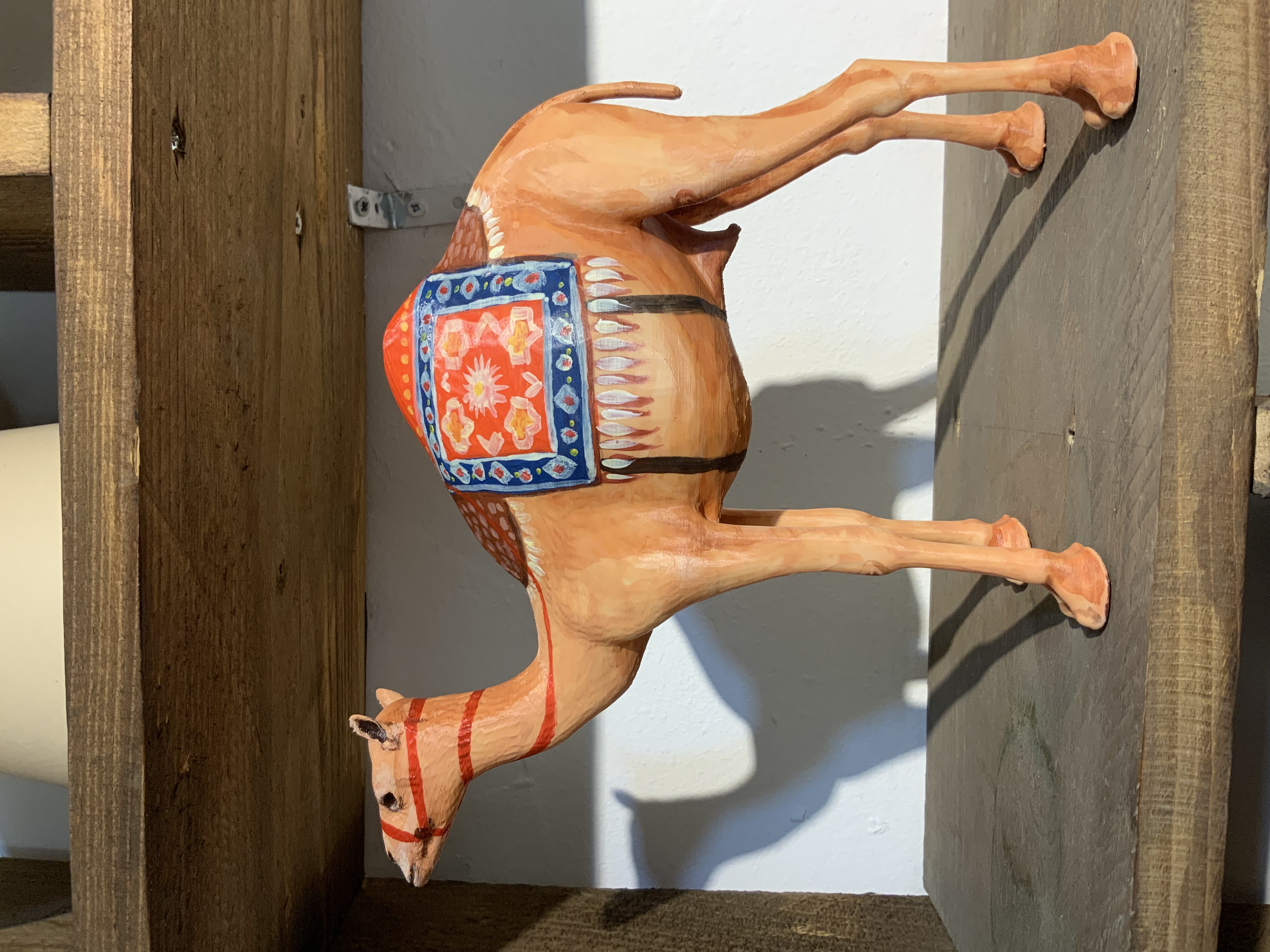 An artistic figurine embodying the beauty of Arabian caravans crossing the desert, adorned with traditional colors and Bedouin patterns that carry the spirit of heritage and travel. This handcrafted piece blends authenticity with craftsmanship, making it a true expression of Arab identity.