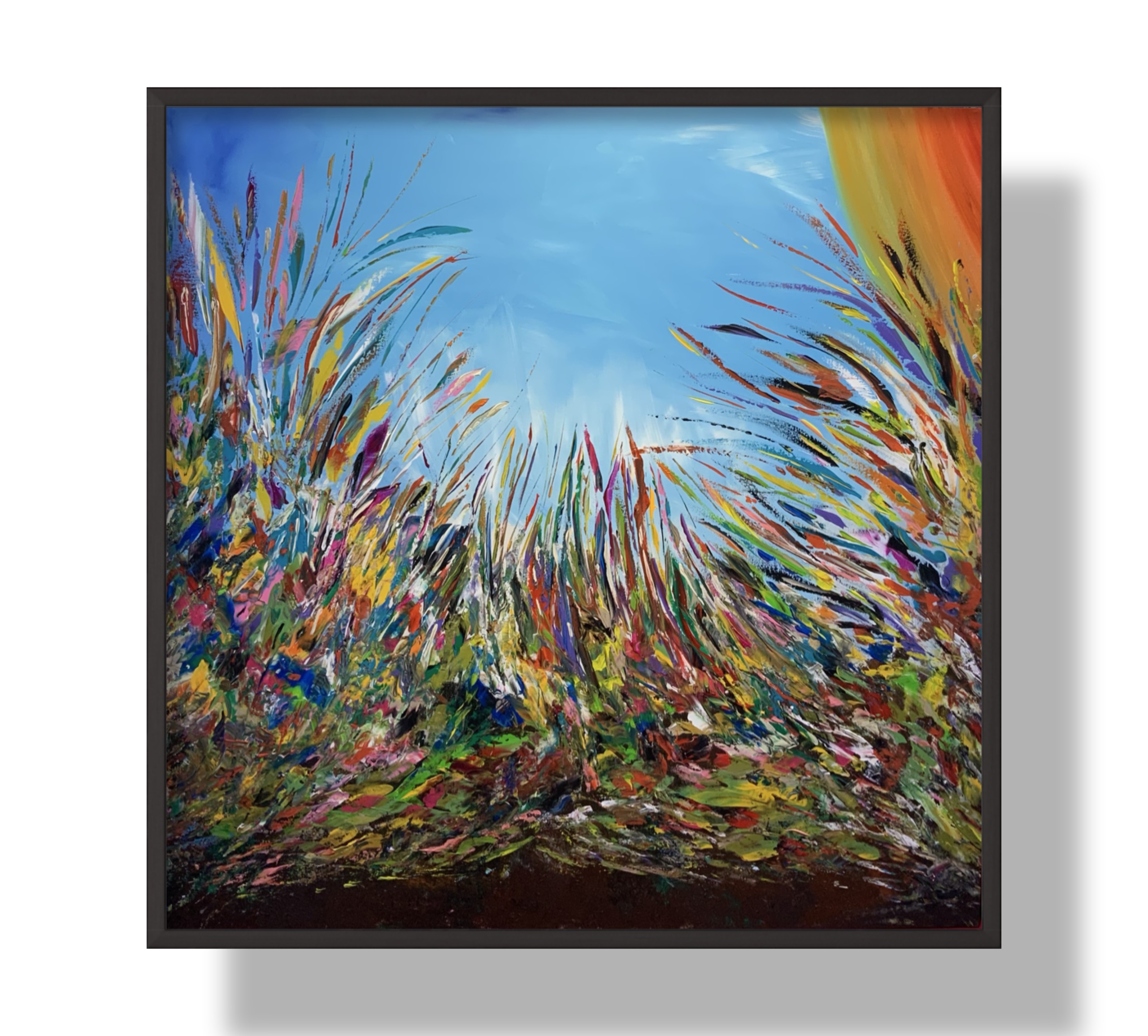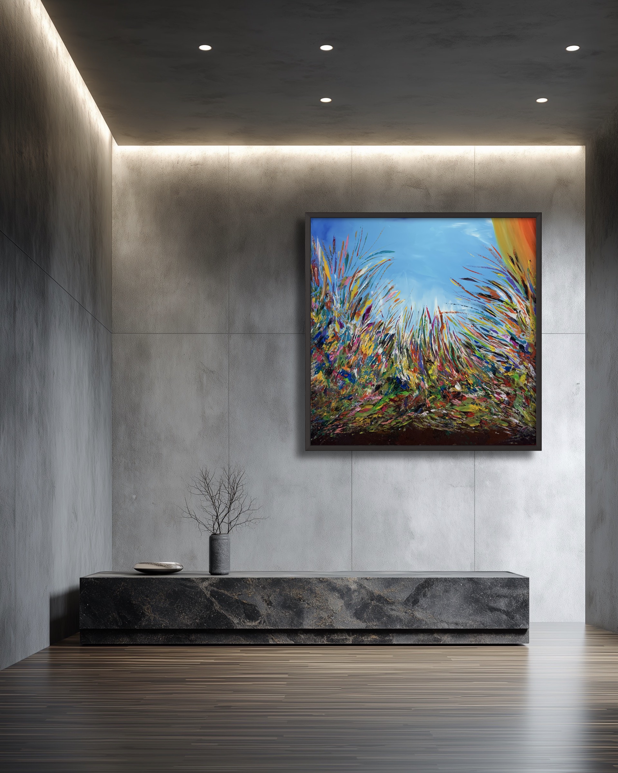 This painting captures nature’s energy at the moment of emergence, with bold colors dancing like wild grasses beneath an open sky. The rapid, layered brushstrokes create a strong sense of movement and freedom, as if life itself is flowing outward from the heart of the canvas.