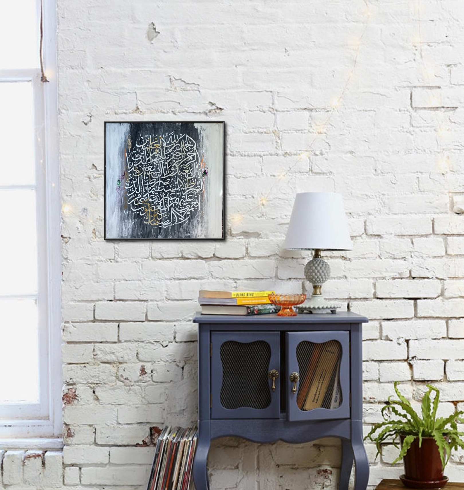 - Spiritual essence: Featuring Qur’anic verses gives the artwork a sacred and tranquil presence.