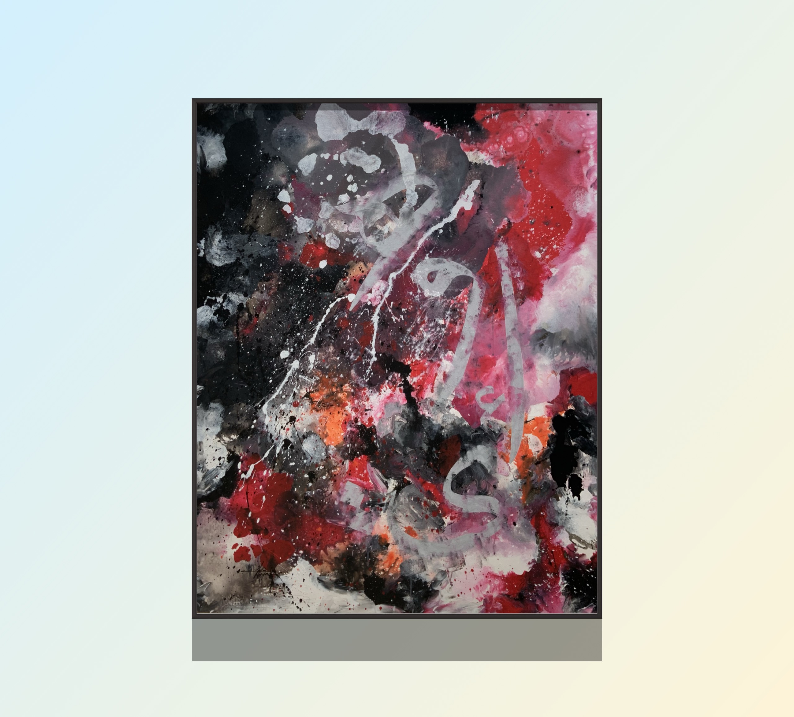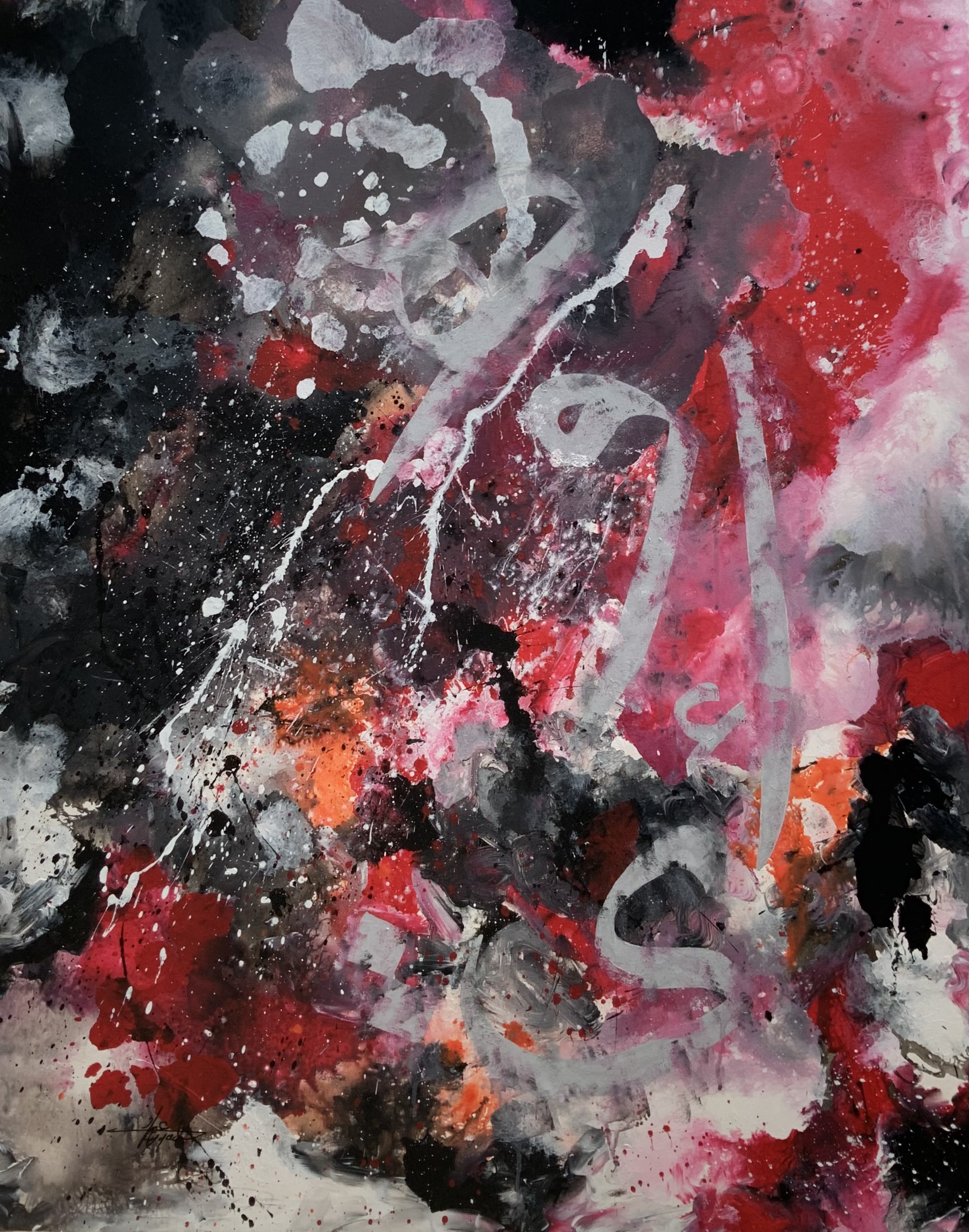 - A distinctive fusion of Arabic calligraphy and expressive abstraction.