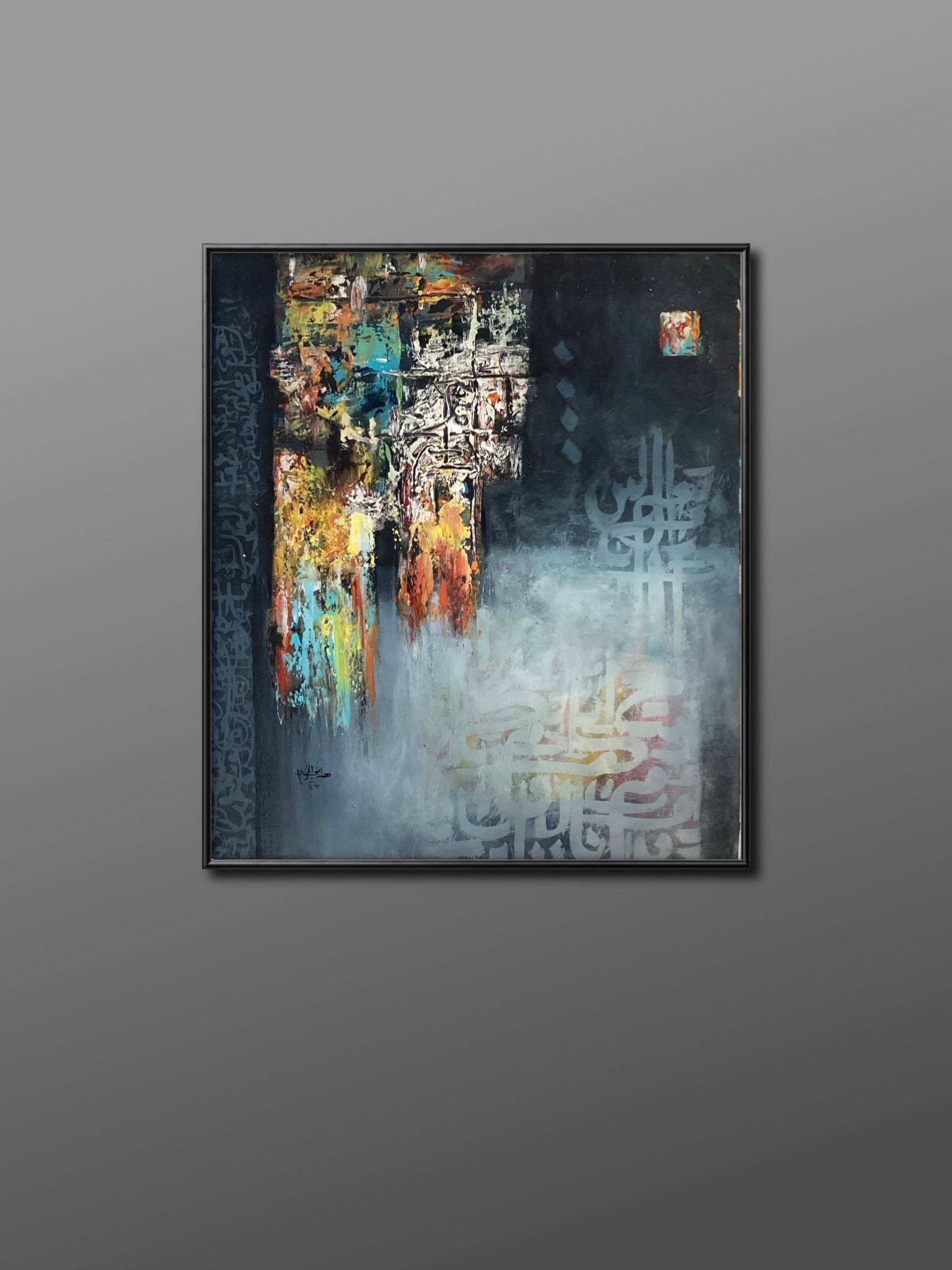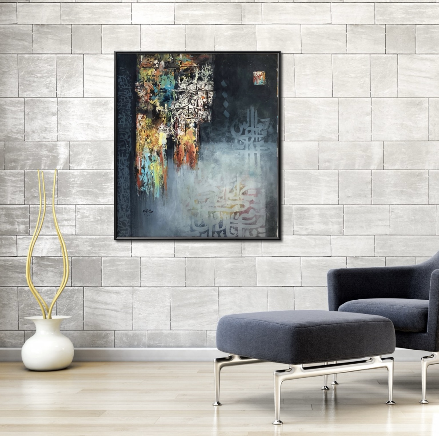 - A harmonious fusion of Arabic calligraphy and abstract expression, enriching the artwork with cultural depth.