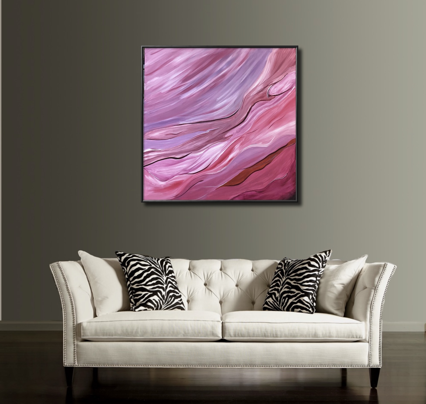 An abstract painting where pink waves flow in soft gradients, creating a sense of visual harmony and emotional calm. It is a color journey that carries the viewer between the delicacy and depth of pink, between the transparency of light and the warmth of feeling.