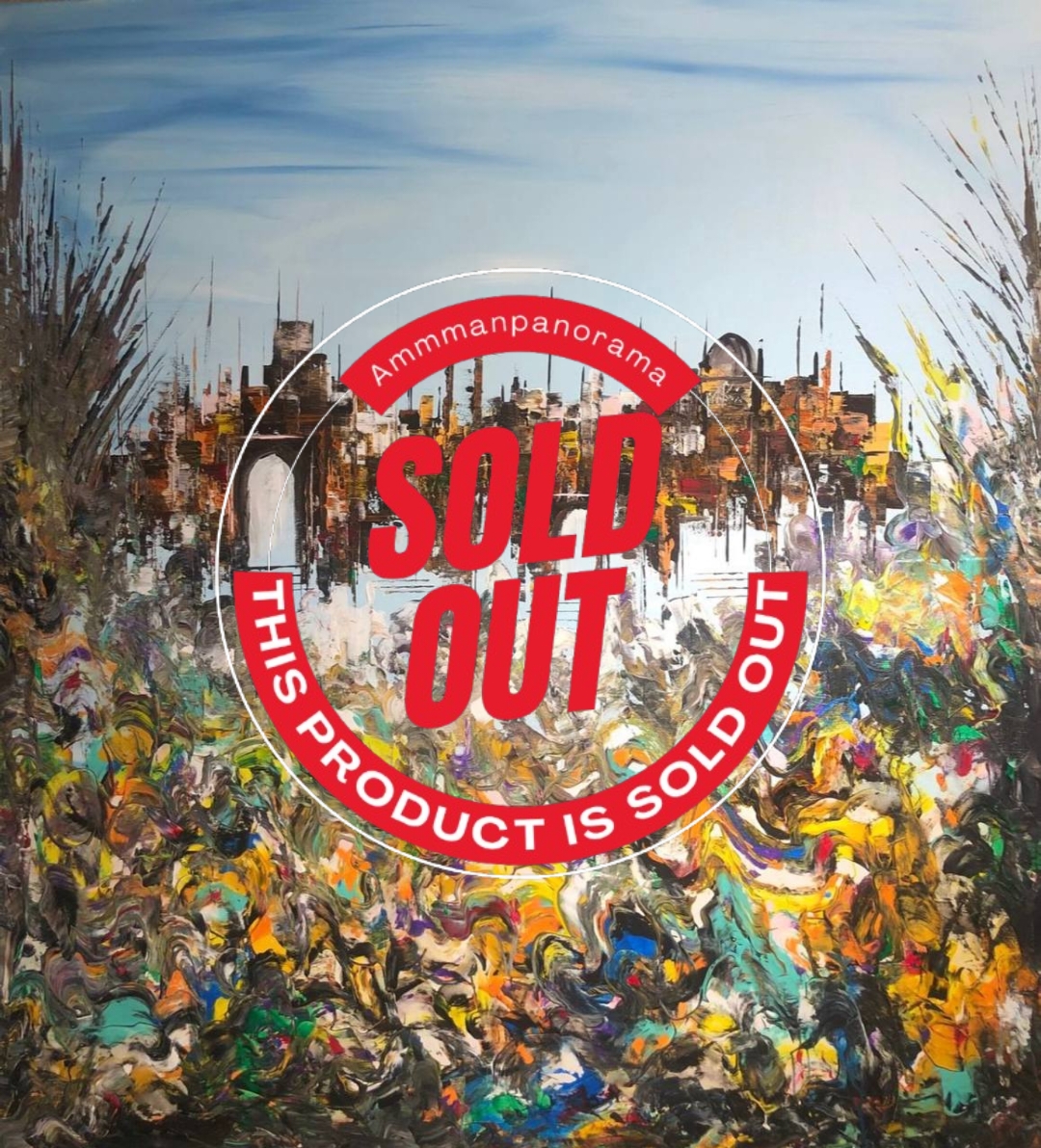 Sky-blue dominates the canvas, symbolizing openness and reflecting Amman’s elevated, expansive landscape.