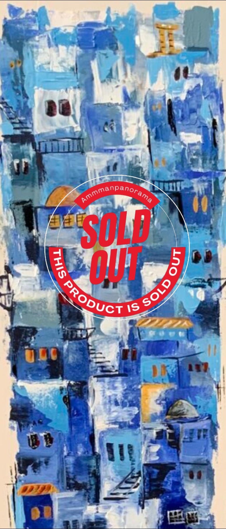 This painting captures a unique blend of daily life and history, dominated by shades of blue that evoke a sense of tranquility and depth. People move through the scene of aged houses with ornate windows, reflecting the warmth and vibrant spirit of old neighborhood.